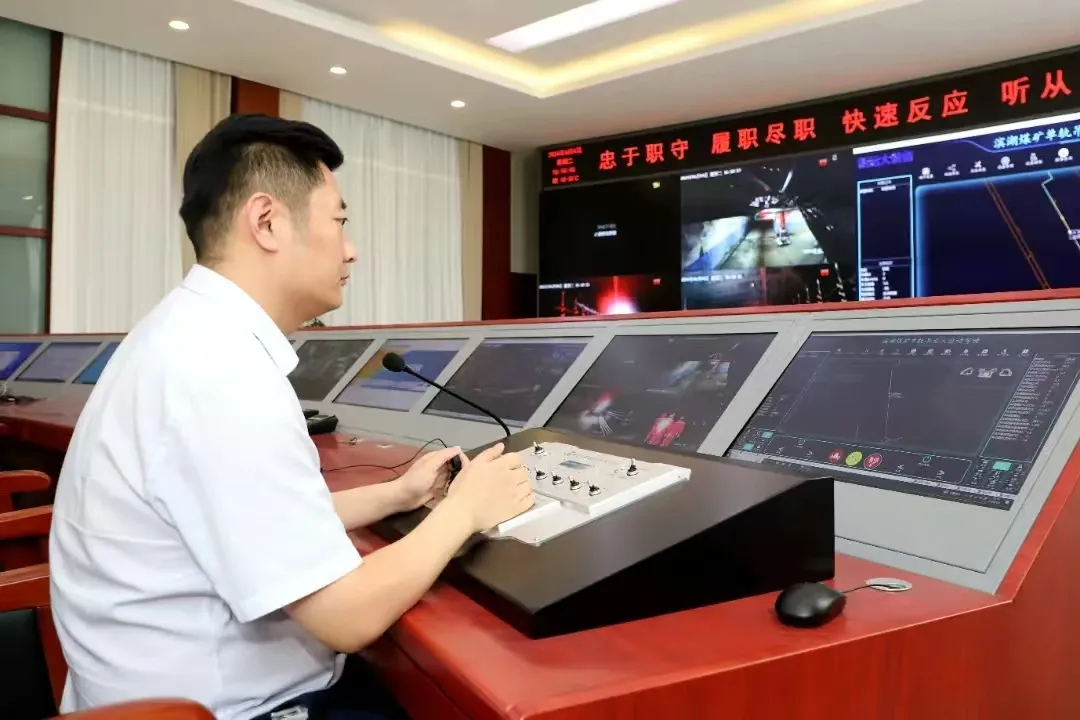 在濱湖煤礦的調(diào)度指揮中心,工作人員輕點鼠標,設(shè)置好起點與終點,百米井下,滿載物料的單軌吊機車如同智能使者,沿著預(yù)設(shè)路線自動行駛,沿途語音播報、司控道岔、風門自動開關(guān),一切盡在掌握之中!包c對點無人駕駛”讓復(fù)雜的煤礦運輸變得簡單而高效。